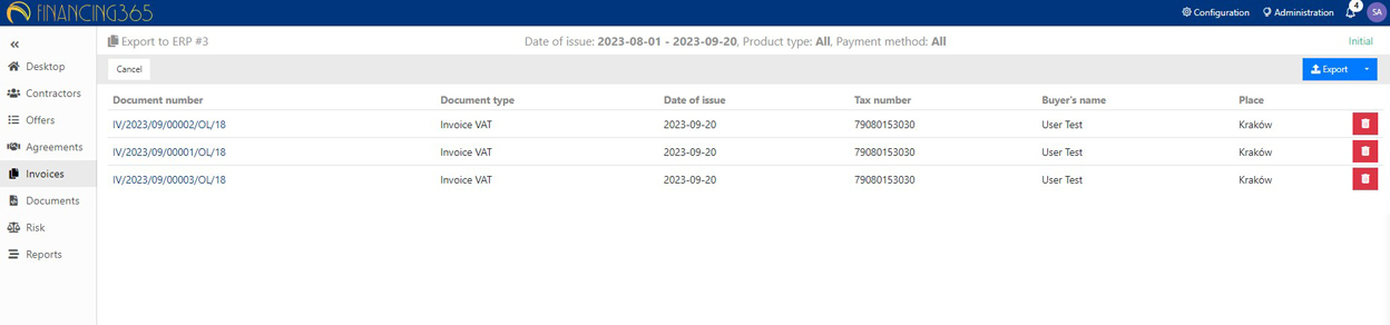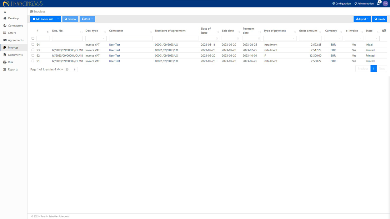 System tworzy do pobrania zestaw dokumentów dla każdej umowy